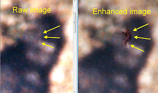Image at left: An example of the stuff that MKD sent to the author of this blog back in June. Here the image is borrowed from Bigfootsightings.org. Make of it what you like. I don't see  blood, I see mud.